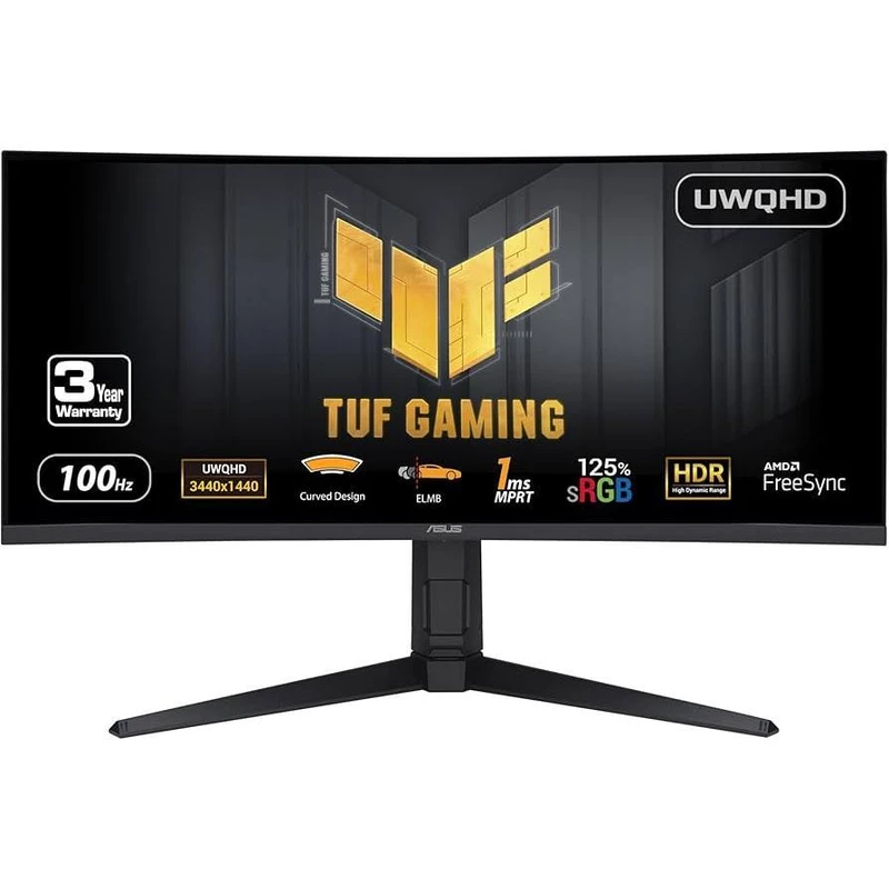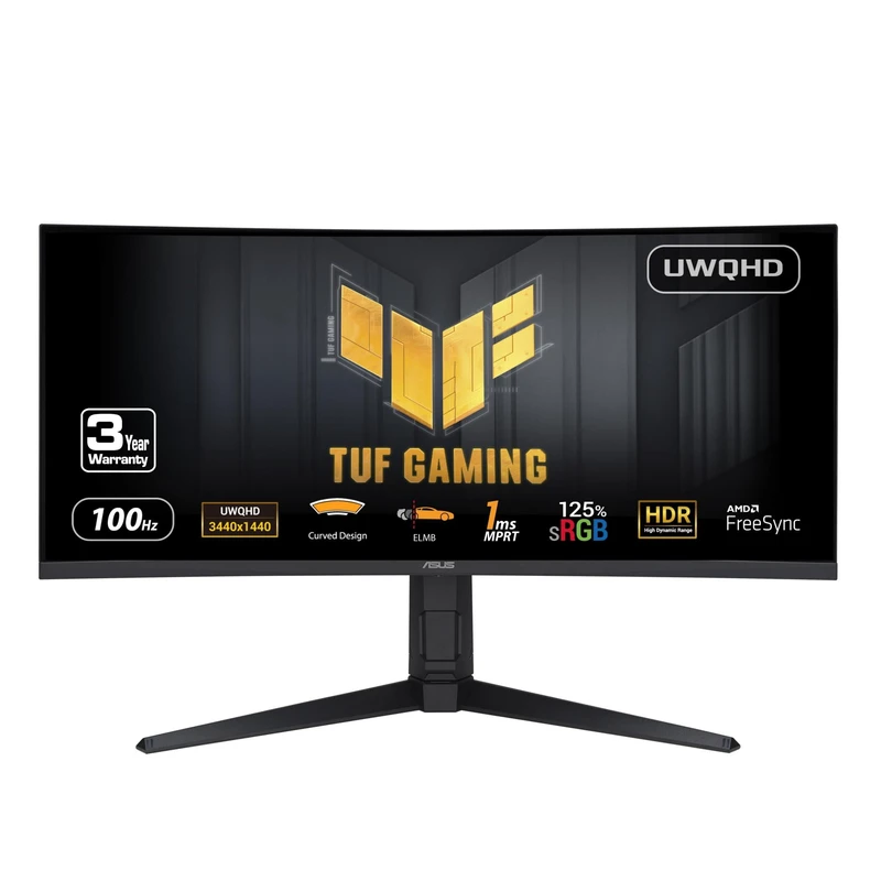 مانیتور خمیده گیمینگ 34 اینچ ایسوس مدل TUF Gaming VG34VQEL1A، پنل VA، نسبت تصویر Ultra Wide – 21:9