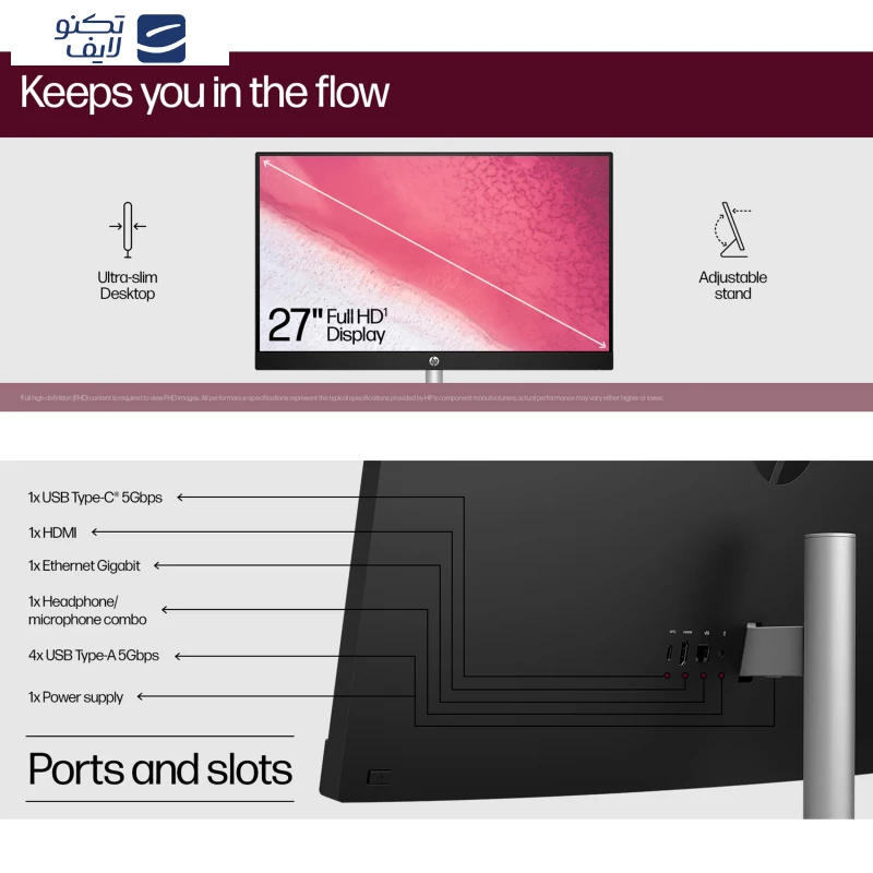 | سایر مشخصات | این دستگاه با استفاده از مواد بازیافتی، از جمله پسماندهای قهوه و پلاستیکهای بازیافتی پس از مصرف و جمعآوریشده از اقیانوسها، ساخته شده است که نشاندهنده تعهد HP به کاهش تأثیرات زیستمحیطی است / برای تسهیل همکاری و ارتباطات، این کامپیوتر مجهز به دوربین پاپآپ با قابلیت شیبدهی برای حفظ حریم خصوصی، میکروفونهای دوگانه و فناوری پیشرفته کاهش نویز است. / صفحهنمایش لمسی Full HD IPS با زاویه دید گسترده ۱۷۸ درجه و وضوح ۱۹۲۰x۱۰۸۰ پیکسل، تصاویری شفاف و واضح را از هر زاویهای ارائه میدهد. همچنین، پنل ضد تابش این امکان را فراهم میکند تا در محیطهای پرنور نیز بهراحتی از محتوا لذت ببرید / پشتیبانی از برنامه ی Intel Unison مخصوص پردازنده های جدید اینتل برای دریافت و برقراری تماس و انتقال اطلاعات بین کامپیوتر و گوشی های تلفن همراه |