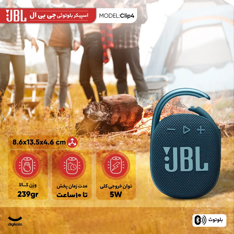 اسپیکر بلوتوثی قابل حمل جی‌بی‌ال مدل Clip 4، یک محصول بی‌نظیر و استادانه در کلاس خود است که با موفقیت، قابلیت حمل فوق‌العاده با کارابین نمادین، کیفیت صدای شگفت‌انگیز JBL Original Pro Sound نسبت به ابعاد، مقاومت کامل در برابر آب و گرد و غبار با استاندارد IP67، عمر باتری طولانی و اتصال بلوتوثی پایدار و کاربردی را در یک پکیج جذاب، رنگارنگ و بسیار دوست‌داشتنی گرد هم آورده است. Clip 4 برای افرادی که به دنبال یک همراه صوتی کوچک، سبک، بادوام، باکیفیت و همه‌فن‌حریف برای تمام لحظات زندگی خود، از فعالیت‌های روزمره و ورزش گرفته تا ماجراجویی‌های هیجان‌انگیز در طبیعت و سفرها هستند، انتخابی بی‌رقیب و بسیار هوشمندانه است. این اسپیکر کوچک، با صدای بزرگ و قلب ماجراجوی خود، آماده است تا هر لحظه‌ی شما را با موسیقی، خاطره‌انگیزتر کند.